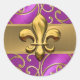 Sticker Rond Fleurs de Lis fleur de Magenta et de Filigree or