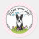 Sticker Rond Fleurs de printemps Boston Terrier Chien (noir) mi