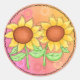 Sticker Rond Fleurs de soleil jaunes texturées vert rose floral