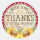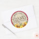 Sticker Rond Fleurs de soleil rouges En vichy chèque Merci