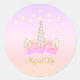 Autocollant de fleurs d'étoiles de licorne sur fond de nuances d'Ipanema. Le texte peut être personnalisé.