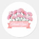 Sticker Rond Fleurs d'oeillet avec bannière Merci floral