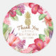 Sticker Rond Fleurs Exotiques Tropicales & Ananas Doré Élégant
