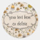 Belle motif blanche avec fleurs jaunes et oranges sur le curling et tiges tourbillonnantes avec feuilles vert vif sur un arrière - plan beige clair. Le cadre est l'endroit idéal pour personnaliser ce produit avec votre nom ou un court message. Cet autocollant fonctionnerait également très bien pour étiqueter les produits de toilette ou épicer des bouteilles simples avec un joli étiquette.