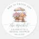Ajoutez une touche charmante à vos cadeaux de bouchée de mariage avec cet autocollant rond classique pour mariage Floral Off the Market, parfait pour une célébration rustique inspirée des marchés de fermiers. Doté d'un design aquarelle fantaisiste représentant un chariot de fleurs en bois débordant de pivoines roses, de roses pêche, de lilas lavande, d'hortensias lilas pâle, de lys jaunes et de fleurs sauvages, il rassemble la modernité et le charme floral romantique dans une palette colorée de vert, de bleu, d'orange, de rose et de jaune. Facile à personnaliser - si vous avez besoin d'aide, je serais ravi de vous aider !