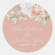Cet autocollant de mariage floral romantique présente un fond élégant pêche poussiéreux avec des fleurs pêche et blanches aquarellées. Un bouquet délicat est représenté en haut. Des noms d'exemple d'un couple sont imprimés en bas dans une police script élégante.