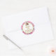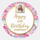 Sticker Rond Fleurs roses chic, photo personnalisée, joyeux ann
