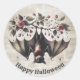 Sticker Rond Fleurs roses d'Halloween Chauve-souris maléfique F