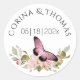 Le design élégant comprend un bouquet de pulvérisation rose aquarelle avec papillon rose ajouté. Ajouter le nom et la date du couple ou tout autre message spécial