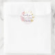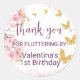 Sticker Rond Fleurs roses Papillons d'or Script Merci