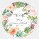 Belle aquarelle fleurie de guirlande à couronne personnalisable faveur de mariage (actuellement écrit Merci) autocollants. Vous pouvez customiser des couleurs Arrière - plan et texte. Partie d'une collection.