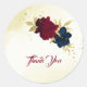 Beau autocollant de remerciement mariage avec fleurs bleu marine foncé et rouge et feuilles d'or. Les détails de la parties scintillant d'or sont simulés. POUR PLUS DE PRODUITS CORRESPONDANTS cliquez sur la collection ci-dessus ou contactez-moi