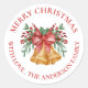 Fleurs rouges mignonnes Berries Bell Bow Joyeux Sticker rond classique de Noël. L'autocollant a un design mignon avec MERRY CHRISTMAS écrit dans une jolie police avec espace pour ajouter le nom de famille. Ces autocollants mignons peuvent être customisés facilement en changeant le nom de famille. Pour toute personnalisation supplémentaire, n'hésitez pas à me contacter à l'adresse mypaperlove2021@gmail.com