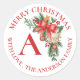 Baies aux fleurs rouges mignonnes Monogramme Sticker rond classique de Noël joyeux. L'autocollant a un design mignon avec MERRY CHRISTMAS écrit dans une jolie police avec espace pour ajouter le nom de famille et monogramme initial du nom. Ces autocollants mignons peuvent être customisés facilement en changeant le nom de famille et le monogramme. Pour toute personnalisation supplémentaire, n'hésitez pas à me contacter à l'adresse mypaperlove2021@gmail.com