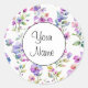 Sticker Rond Fleurs sauvages aquarelles rose violet élégantes