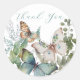 Fleurs vertes d'été romantiques avec papillon merci autocollants ronds avec nom personnalisable et texte pour des cadeaux élégants et chic!