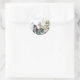 Sticker Rond Fleurs vertes romantiques et papillon merci