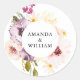 Ajoutez une touche spéciale à votre mariage avec cet autocollant personnalisé élégant représentant les noms des mariés dans une police stylisée. Décoré de fleurs délicates à l'aquarelle dans des tons pastel doux, il est parfait pour sceller des enveloppes, des boîtes de faveurs ou décorer la papeterie de mariage. Une belle façon d'ajouter un détail romantique et personnalisé à votre grand jour.