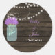 Bois rustique, feux à cordes pendants avec fleurs violettes dans un pot de mason mariage préférez les autocollants et les scellés d'enveloppe. Produits correspondants également disponibles