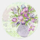 Sticker Rond Fleurs violettes vintages Shabby vert blanc