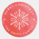 Les autocollants de cadeau de Noël personnalisés présentent un flocon de neige blanc décoratif sur fond d'aquarelle artistique rouge, moderne et tendance.