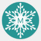Scellez vos salutations de vacances avec cet autocollant monogrammé qui présente un flocon blanc sur un arrière - plan bleu turquoise profond. Parfait pour scrapbooking aussi ! Joyeuses fêtes !