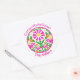 Say “Congratulations!” in vibrant style! This round floral sticker features magenta and orange blooms with a bold white frame to spotlight your personalized message. Perfect for graduation favors, gift tags, and party envelopes.
