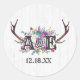 Sticker Rond Floral Deer Antler Bouquet Rustique Monogramme Mar