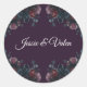 Sticker Rond Floral foncé violet élégant Mariage Maroon Mauve