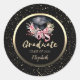 Sticker Rond Floral Grad Cap Pink Bow Confetti