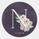 Sticker Rond Floral Romance Lettre N Monogramme Plum Mariage Sc