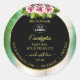 Sticker Rond Floral Rose Marbre Turquoise Noir Produit Étiquett