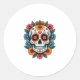 Sticker Rond Floral Sugar Skull Dia De Muertos Day of The Dead