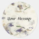 Ce produit présente un gros plan d'un design floral délicat et d'inspiration vintage. L'arrière - plan est un blanc doux et crémeux avec des pétales et des feuilles éparpillés et translucides. Les fleurs dominantes sont violettes, avec des teintes variées allant du violet profond à la lavande, et sont entrecoupées de petits feuilles verts. L'effet général est éthéré et artistique, avec un sens de la texture naturelle du placement organique des éléments floraux. Ce design évoque une atmosphère botanique nostalgique.