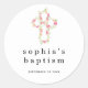 Sticker Rond Floraux rose minimal Nom croisé Date Fille Baptême