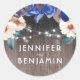 Lampes à cordes, bois de grange et fleurs bleu marine et royal sceau de mariage campagnard rustique