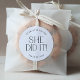 Ce pied minimaliste moderne qu'elle a fait l'autocollant de graduation est parfait pour une simple fête de grand. Le design se compose d'une élégante typographie boho avec une touche de style sophistiqué en noir et blanc minimaliste. Personnalisez votre autocollant de faveur avec le nom du diplômé, et l'année de classe.