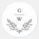 Sticker Rond Foliage délicat et Mariage de monogramme