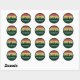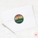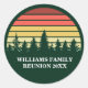 Cool assorti autocollant de réunion de famille en vert pour tout le groupe sur une sortie nature ou un voyage de camping. Cette fête personnalisée en faveur du sceau ou étiquette postal pour sceller une enveloppe présente un beau coucher de soleil vintage sur une forêt de jolis arbres au-dessus de votre texte personnalisé.