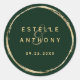 Cet autocollant mariage présente un cadre faux cercle doré avec une élégante esperluette et une calligraphie simple avec un arrière - plan vert de forêt.