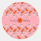 Sticker Rond Fraises blanc rose Doodle Anniversaire