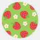 Sticker Rond Fraises et marguerites en vert (2)