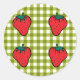 Sticker Rond Fraises sur En vichy vert