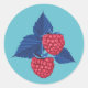 Sticker Rond Framboise sur arrière - plan bleu