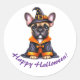 Sticker Rond Frenchie Halloween Purple Robe Witchy Hat