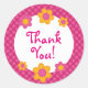Sticker Rond Fuchsia rose plaid mignon merci fleurs de printemp