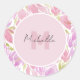 Sticker Rond Fuchsia rose vert Aquarelle Fleurs Monogramme