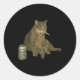 Sticker Rond Fumer drôle Mème Chat Cigarette Kitten Boire B