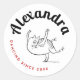 Imaginez un dessin fantaisiste en noir et blanc d'un chat ballerin, dans l'une des illustrations d'Edward Lear. Les textes sont personnalisables, le nom étant écrit dans une police NOIR vintage rétro. Le visage du chat est poché et ludique, avec de grands yeux expressifs et des whiskies proéminents qui ajoutent une touche de méchanceté attachante. L'arrière - plan minimal met en évidence la composition délicate de l'oeuvre, la rendant parfaite pour un autocollant. Cette illustration enchanteresse ferait un cadeau d'anniversaire délicieux et nostalgique pour une dame spéciale qui apprécie l'esthétique lunatique et vintage.
