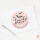 Fun éffrayant traite l'autocollant Halloween. Parfait pour ajouter à vos sacs de faveur de fête d'Halloween. Notre design comprend des chauves-souris et des fantômes amusants ainsi qu'une Personnaliser typographique amusante "Traitements Éffrayants" avec votre nom. Conçu par Moodthology Papery